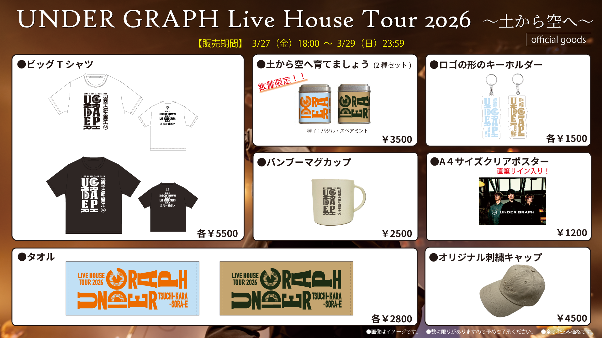グッズ先行販売のお知らせ『UNDER GRAPH Live House Tour 2026 ~土から空へ~ official goods』